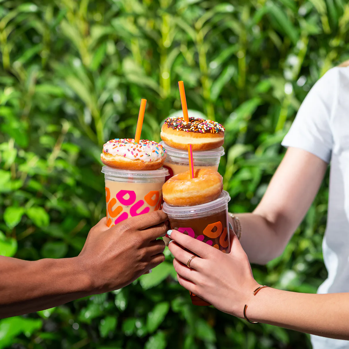 Dunkin offers a full lineup of espresso beverages including Lattes Macchiatos and Cappuccinos a range of frozen beverages and premium teas hot and iced. Free Donut Fridays which briefly ran earlier in the year gets you a free donut with the purchase of any beverage.